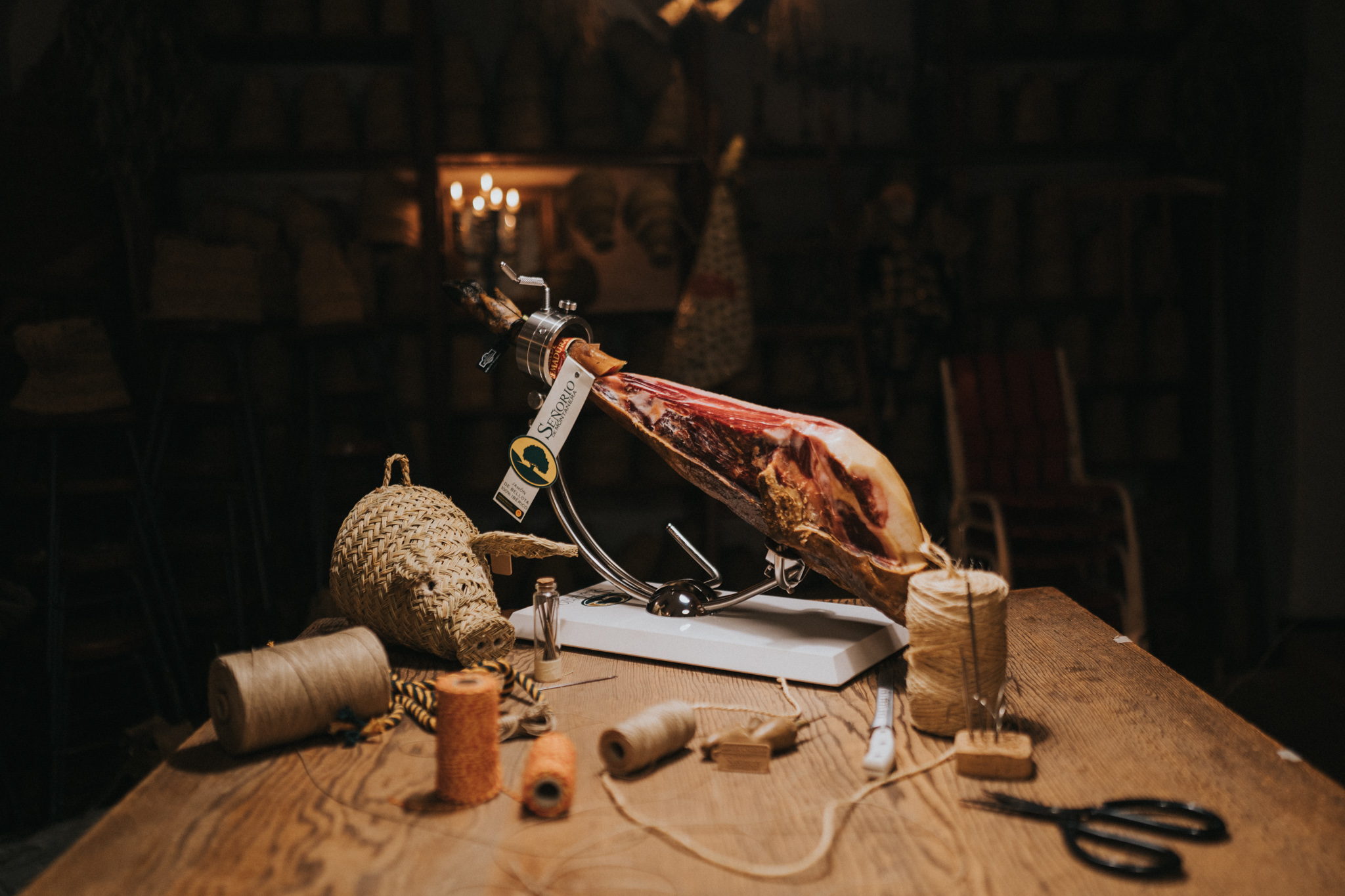 Fiel a la filosofía artesana seña de su identidad, Señorío de Montanera ha colaborado para estas Fiestas con Javier Sánchez Medina. El artista y restaurador de origen extremeño ha realizado para la marca, un referente de ibérico puro de la Denominación de Origen Dehesa de Extremadura, una serie de 50 “trofeos ecológicos” en forma de cabeza de cerdo ibérico y hechas en esparto natural cosido con hilo de bramante. Estas obras son parte del exclusivo pack de edición limitada que se vende en la tienda online de Señorío de Montanera junto a uno de sus jamones de bellota 100% Ibérico de la campaña 2018con DOP Dehesa de Extremadura, entero o loncheado y envasado en bandejas de atmósfera protectora de 80 gramos.