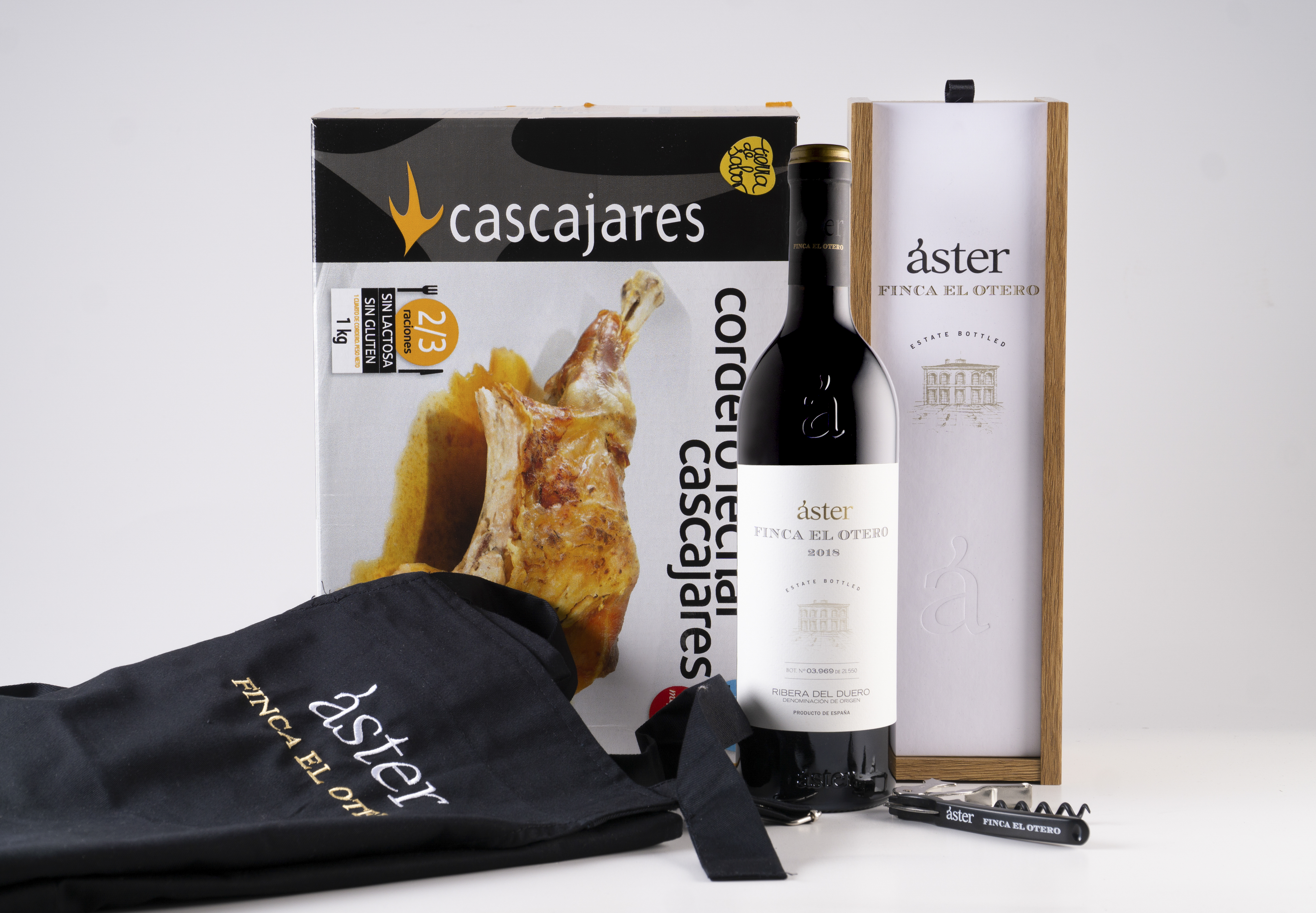Bodegas Áster y Cascajares suman en estas Fiestas lo mejor de la tradición castellana, que ambos representan, en el pack de edición limitada Esencia de Ribera del Duero. La propuesta incluye una botella de Áster Finca el Otero 2018, uno de los vinos más emblemáticos de la bodega y de una cosecha excepcional, un sacacorchos, un delantal y un cuarto de cordero lechal, que viene listo para solamente calentarlo al horno durante 25 minutos. El conjunto se puede conseguir llamando al 947 52 27 00 o escribiendo a aster@riojalta.com.