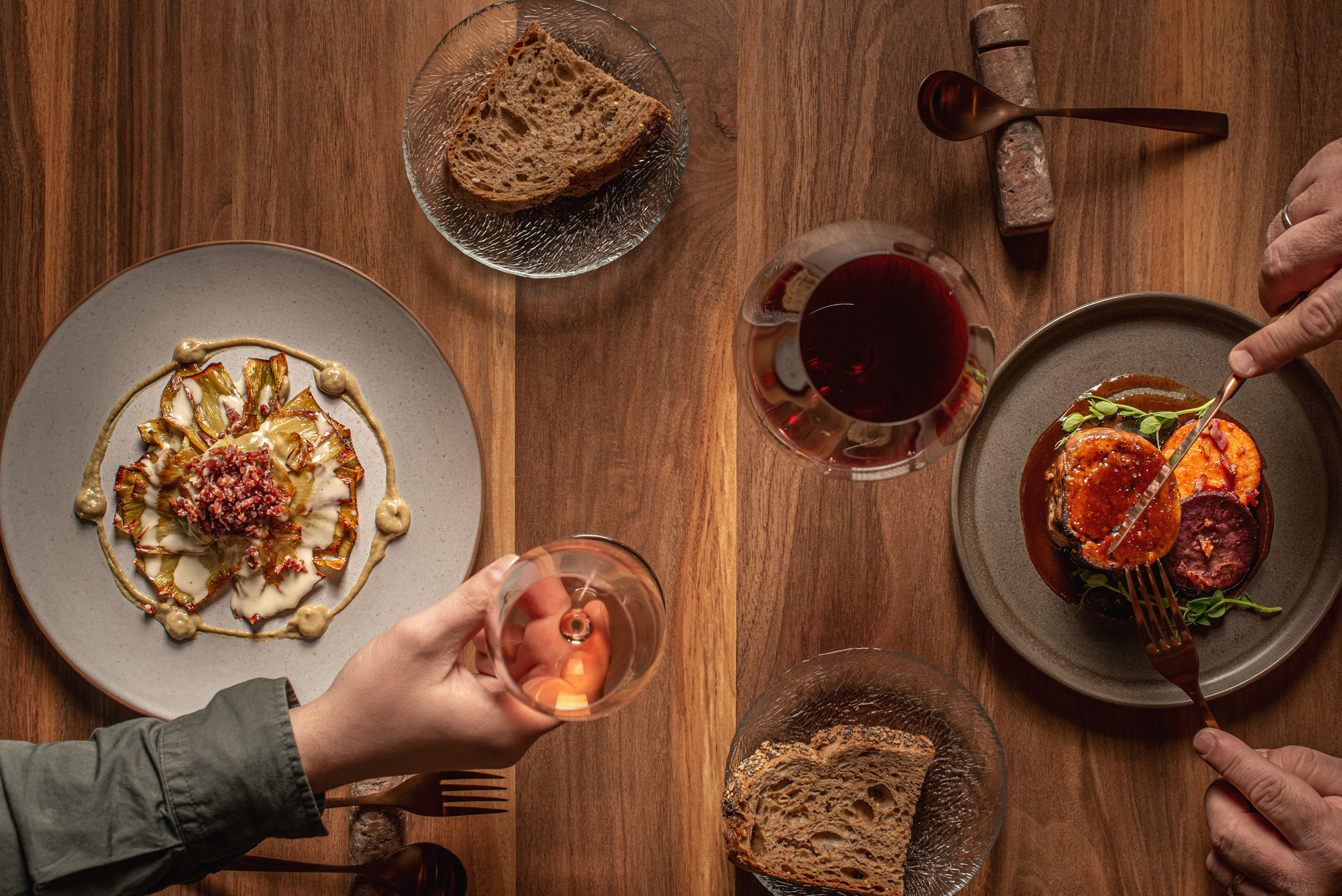 La artesanía gastronómica que define la apuesta de Terracotta suma el formato fine dining a las opciones para estas Fiestas. El restaurante ha diseñado dos menús para grupos, de 56 y 65 euros, con opción de maridaje. Ambos incluyen entrantes para compartir, un plato principal y postre, y algunos de sus platos más populares, entre ellos el puerro a la brasa con tartar de gambón y la corvina a la brasa con puré de coliflor y remolacha.