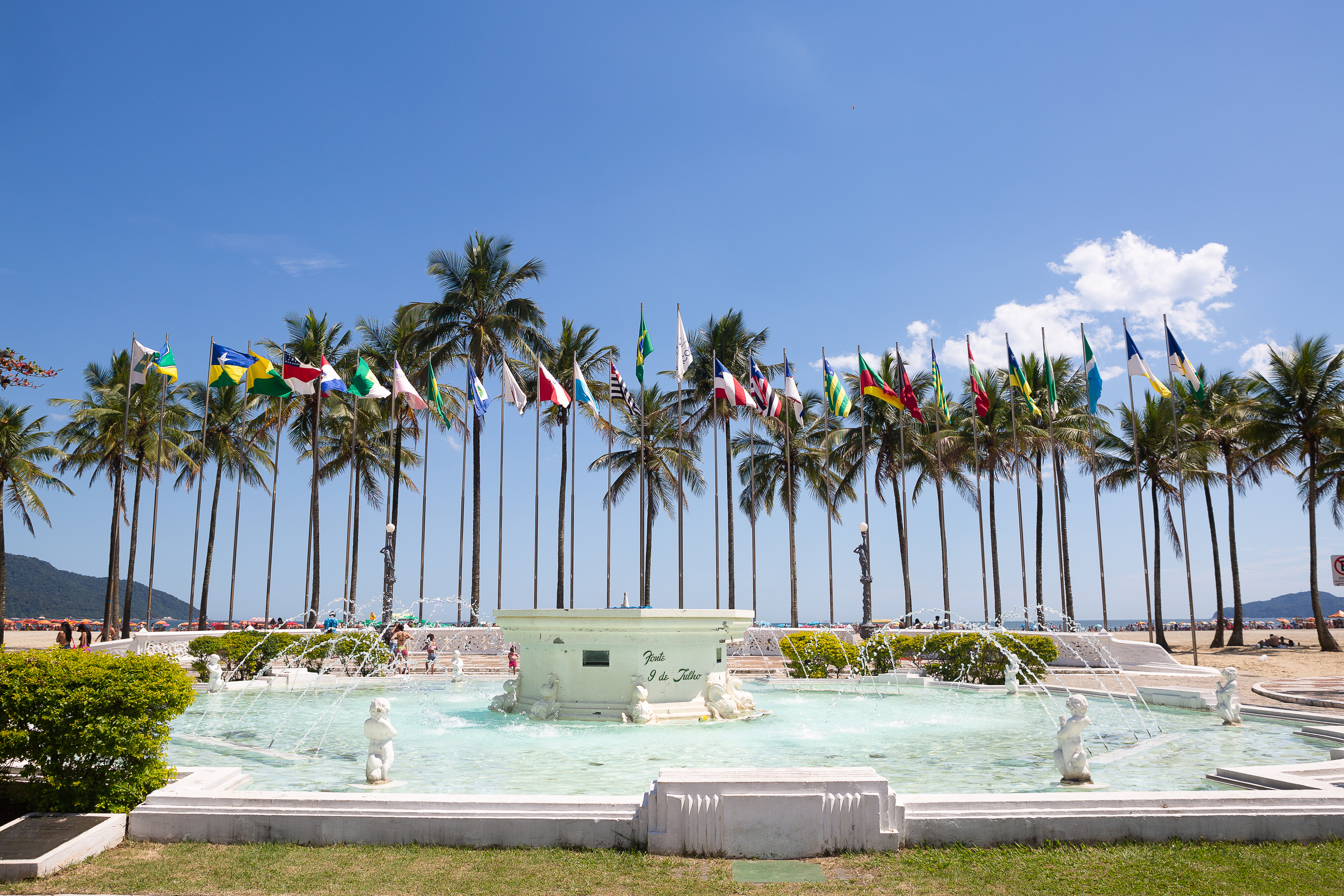 Probablemente la playa más conocida del litoral paulista, está situada en la ciudad de Santos (a poco más de una hora del centro de São Paulo), con aguas tranquilas y multitud de espacios para alquilar sombrillas y tumbonas, además de chiringuitos donde comer y beber. Es, además, una playa accesible y perfecta para los que viajan con niños. Su paseo marítimo orece opciones de compras y un atardecer espectacular. Al lado, la Plaza de las Banderas exhibe las banderas de todos los estados de Brasil.