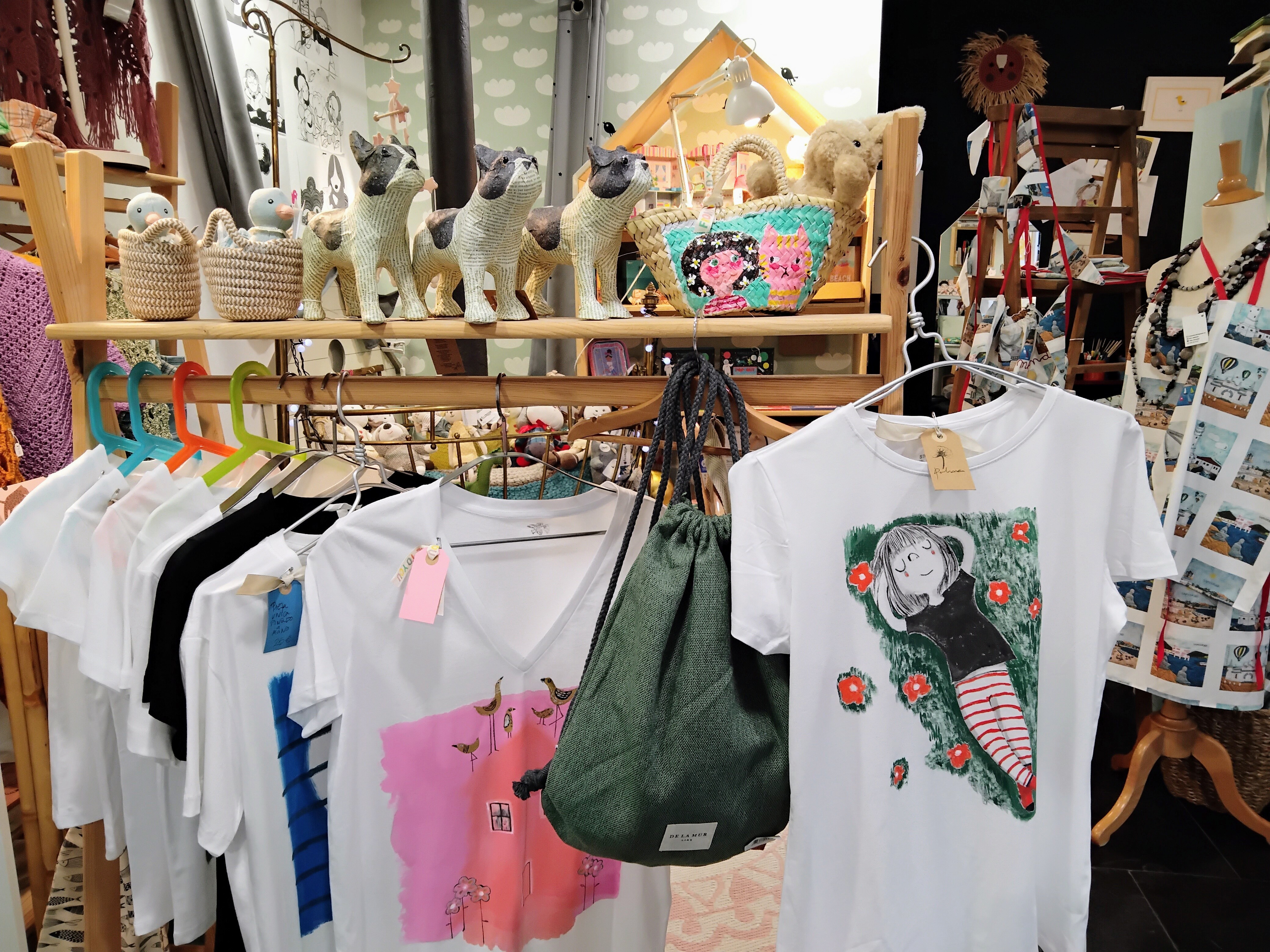 Paloma Merendón, an illustrator who has been using a lot of imagination in fashion, has her establishment on Calle Gándara. In her shop, she sells not only the tee-shirts she designs, but also decorative items such as tablecloths, coasters and illustrated appointment books. However, the most special part of her offerings is her personalised orders, which she designs based on her clients’ ideas for bags, cushions, slippers and tee-shirts, which she paints by hand. In addition, Paloma Merendón has collaborated with different companies, for instance, by designing the packaging of various products.